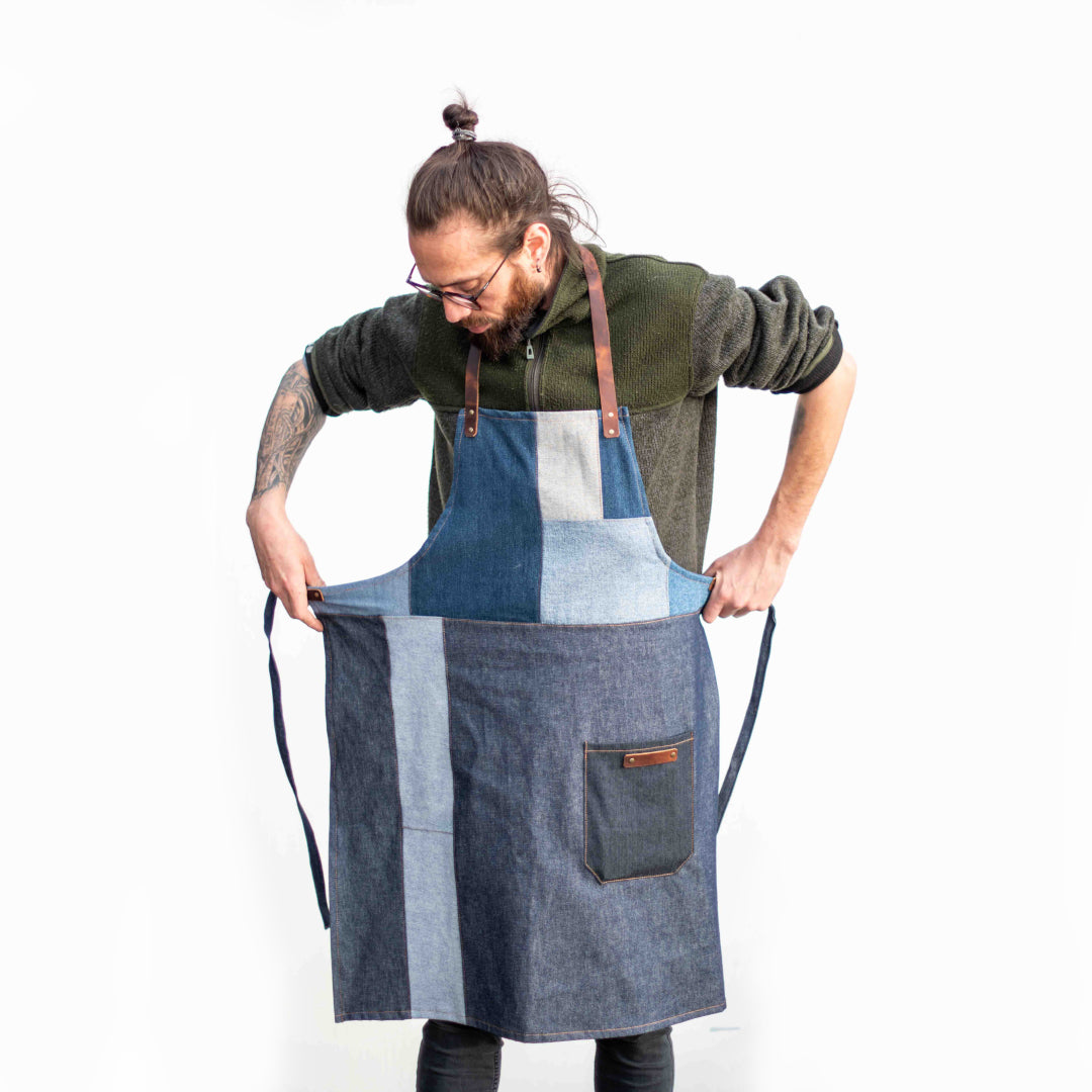 Pechera elaborada con jeans👖 reutilizados y aplicaciones en cuero. Producto artesanal con excelente manufactura y terminaciones.